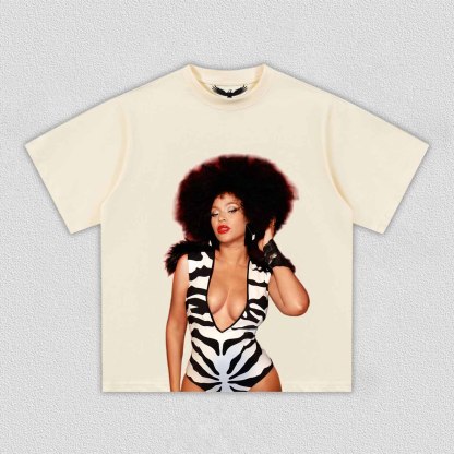 This t-shirt is a relaxed fit; true to size. We recommend sizing up if you prefer an oversized fit.